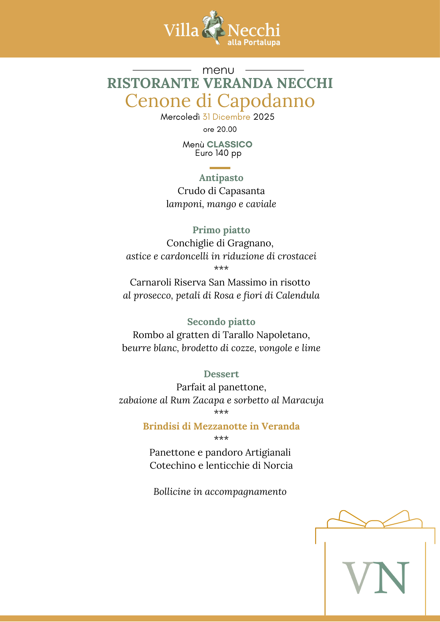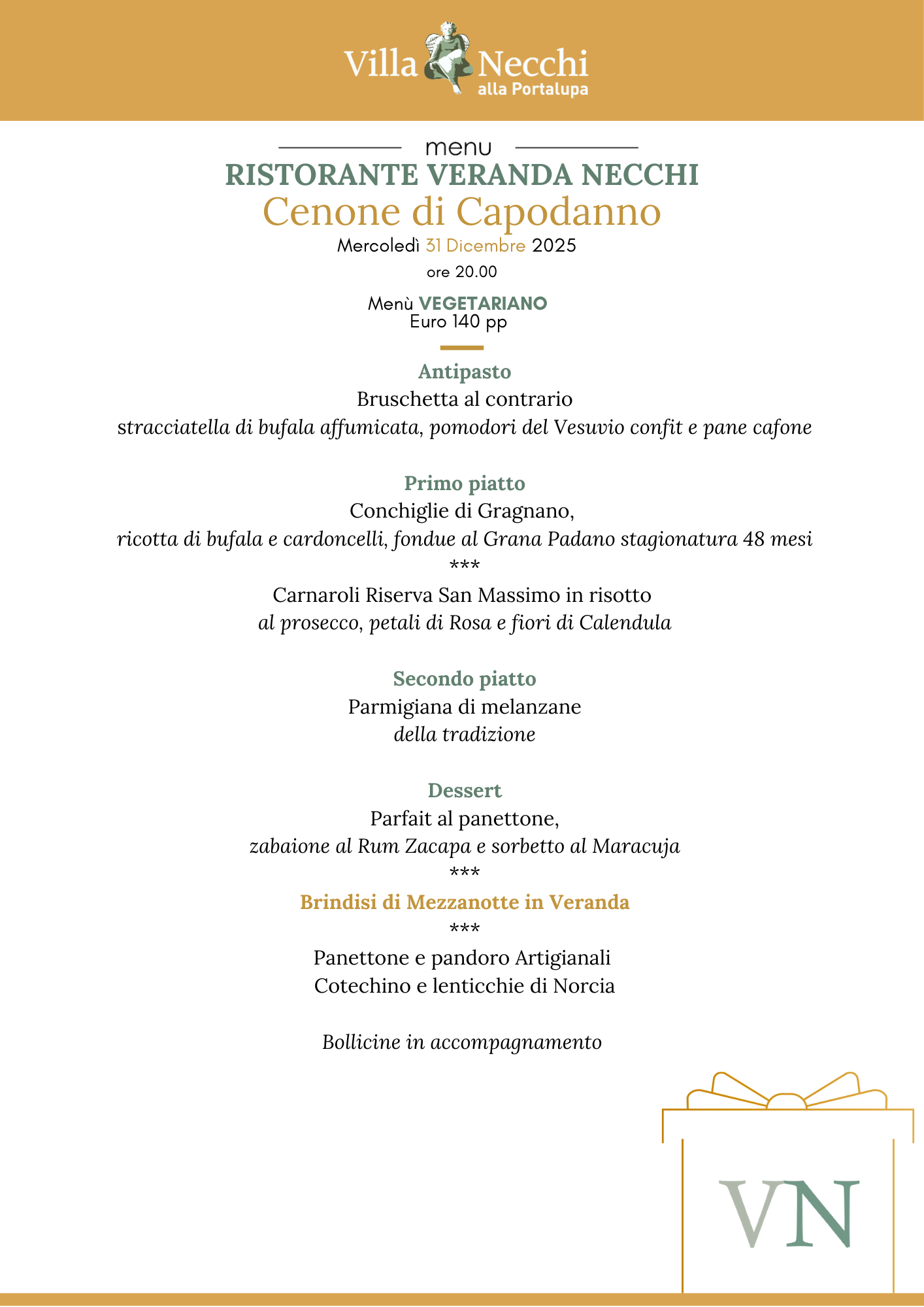 Alle 23.30 circa vi daremo nuovamente appuntamento nella Veranda per prepararci al brindisi di mezzanotte dove gusterete il nostro cotechino e lenticchie.